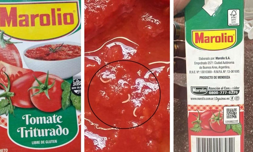 La Administración Nacional de Medicamentos, Alimentos y Tecnología Médica (ANMAT) advirtió “de forma preventiva y con el objetivo de proteger la salud de la población”, sobre la presencia de gusanos en una partida de tomate triturado en caja marca Marolio.